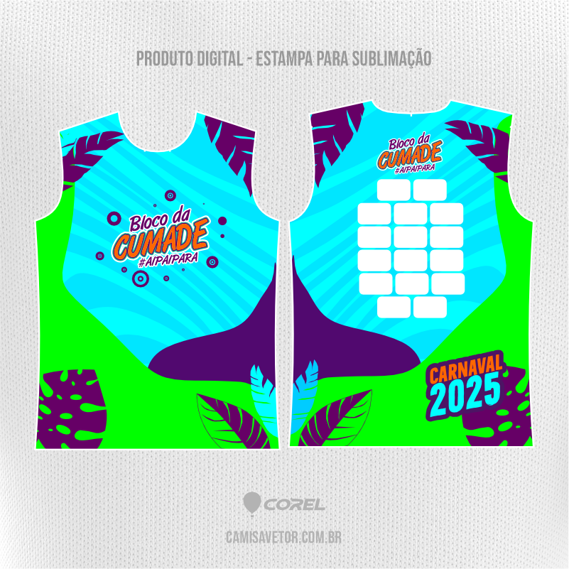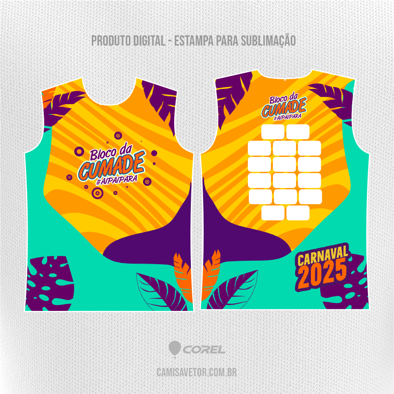 Com nossa estampa vetorizada de BLOCO DE CARNAVAL em CorelDRAW, você terá a liberdade de criar camisetas personalizadas incríveis e cheias de estilo. Ideal para quem busca designs autênticos e de alta qualidade para sublimação.