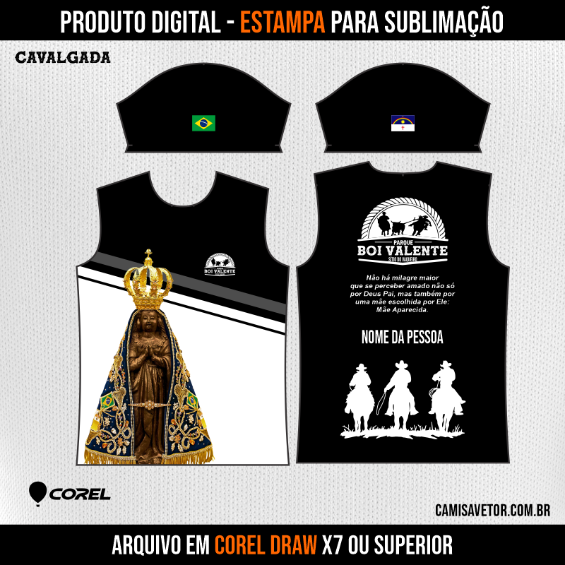 Com nossa estampa vetorizada de Cavalgada Boi Valente em CorelDRAW, você terá a liberdade de criar camisetas personalizadas incríveis e cheias de estilo. Ideal para quem busca designs autênticos e de alta qualidade para sublimação.
