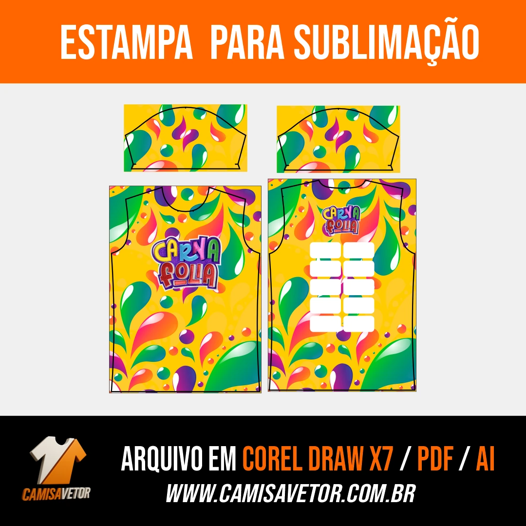 Leve o espírito do carnaval para sua festa ou bloco com a Estampa Abadá CarnaFolia 13! Uma arte vibrante, cheia de cor e energia, perfeita para personalizar abadás, camisetas e uniformes de eventos carnavalescos.