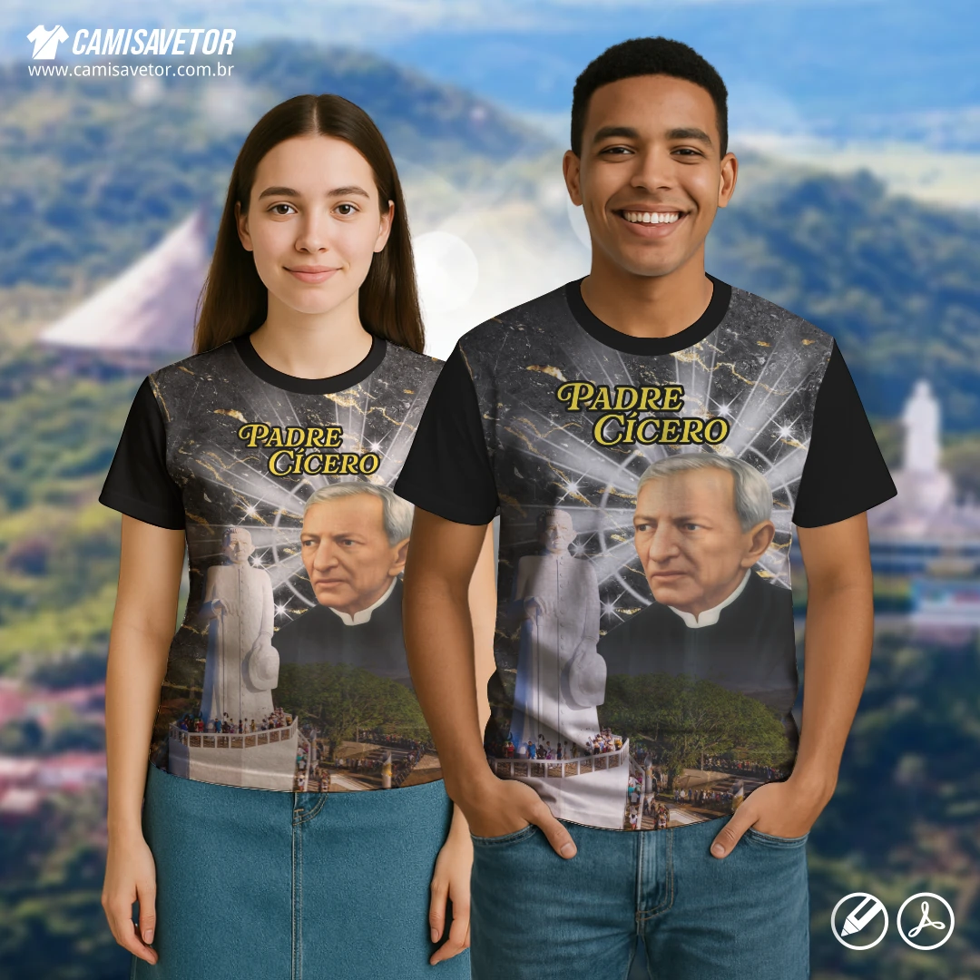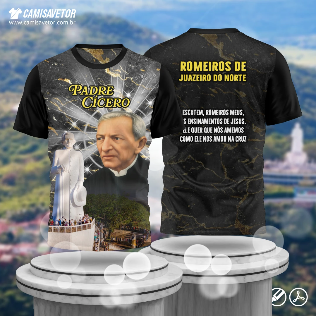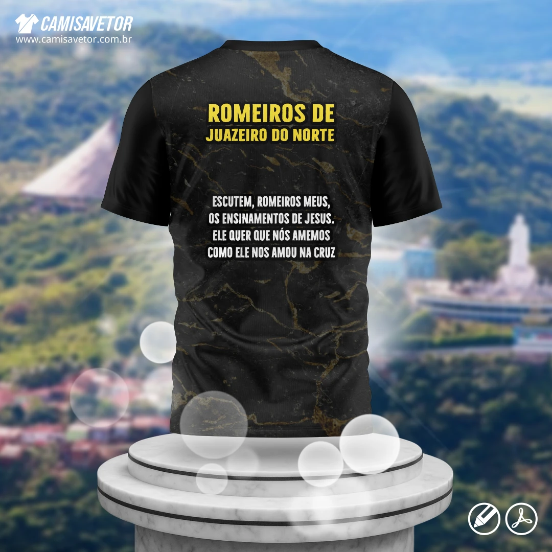 Expresse fé e devoção com a Estampa Camisa Católica Romeiros, feita especialmente para grupos que participam de romarias, peregrinações e eventos religiosos. Um design marcante que une espiritualidade e identidade católica.