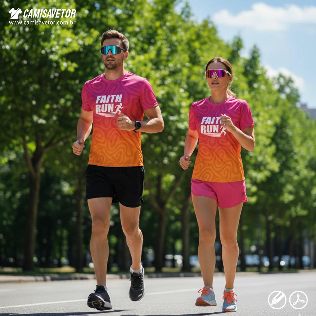 Dê mais estilo e identidade às suas camisas esportivas com a estampa Camisa Corrida de Rua Faith Run!