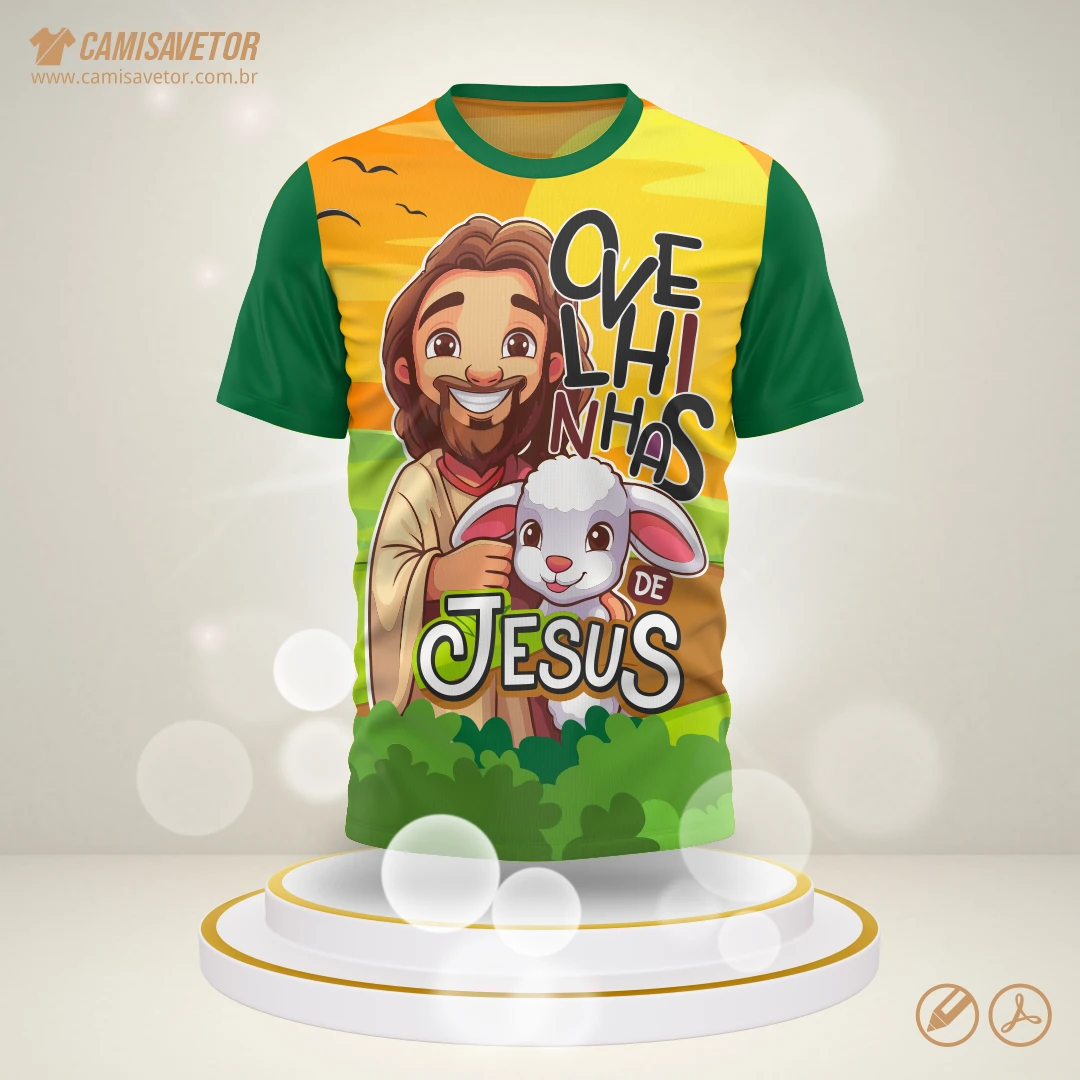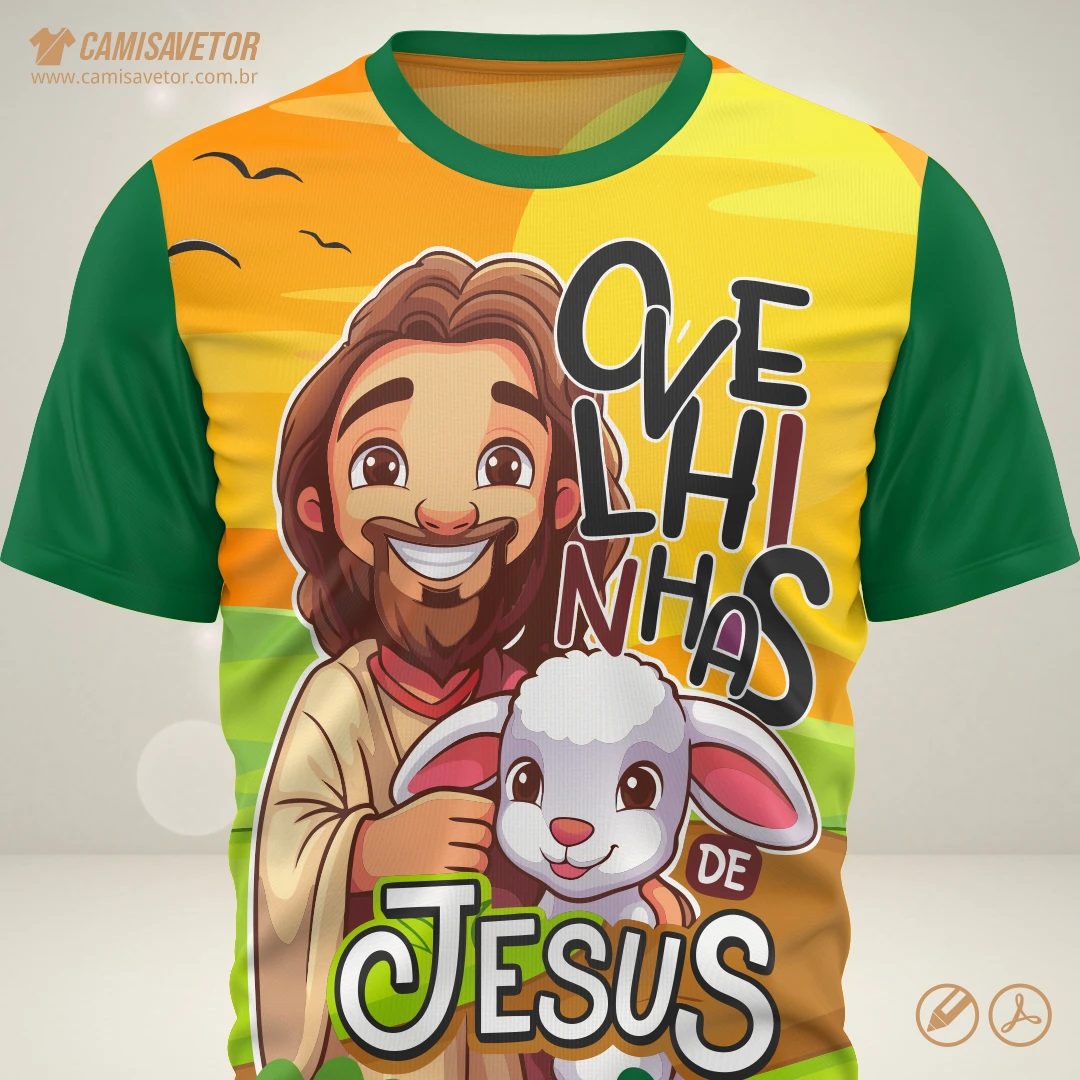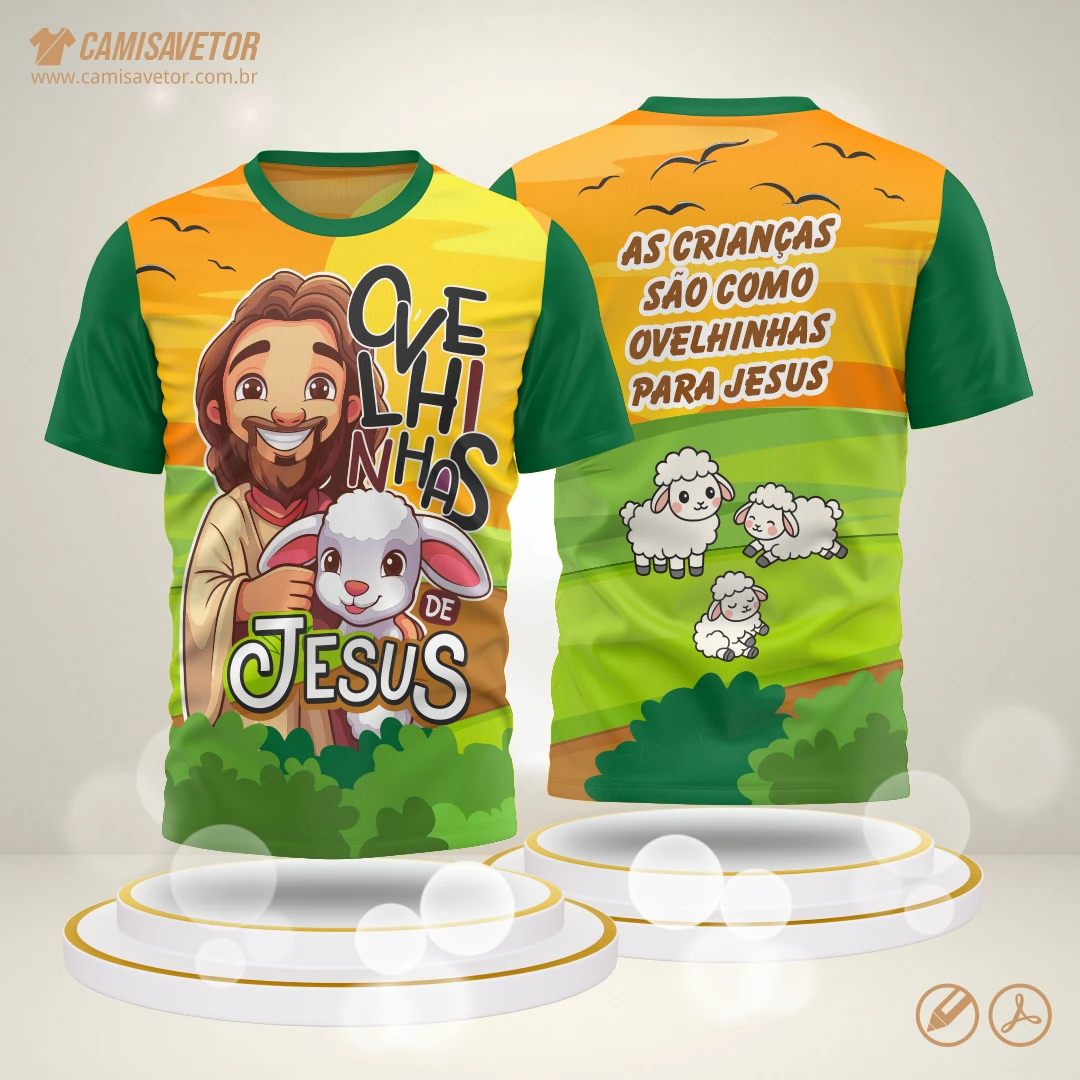 Leve ternura e fé para suas criações com a Estampa Camisa Cristã Ovelhinhas de Jesus. Um design cristão delicado e cheio de significado, perfeito para camisas de ministérios infantis, grupos de jovens, eventos cristãos e uso pessoal.