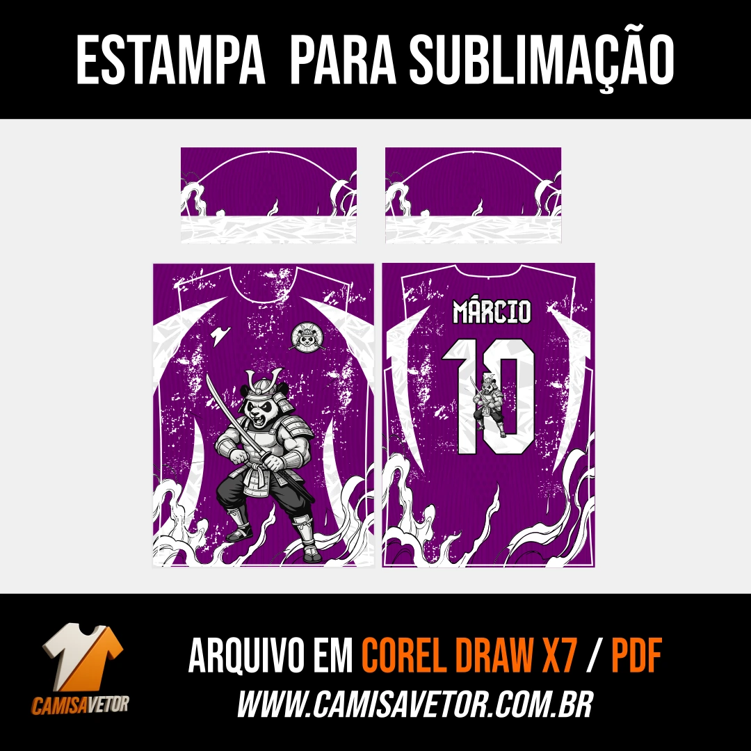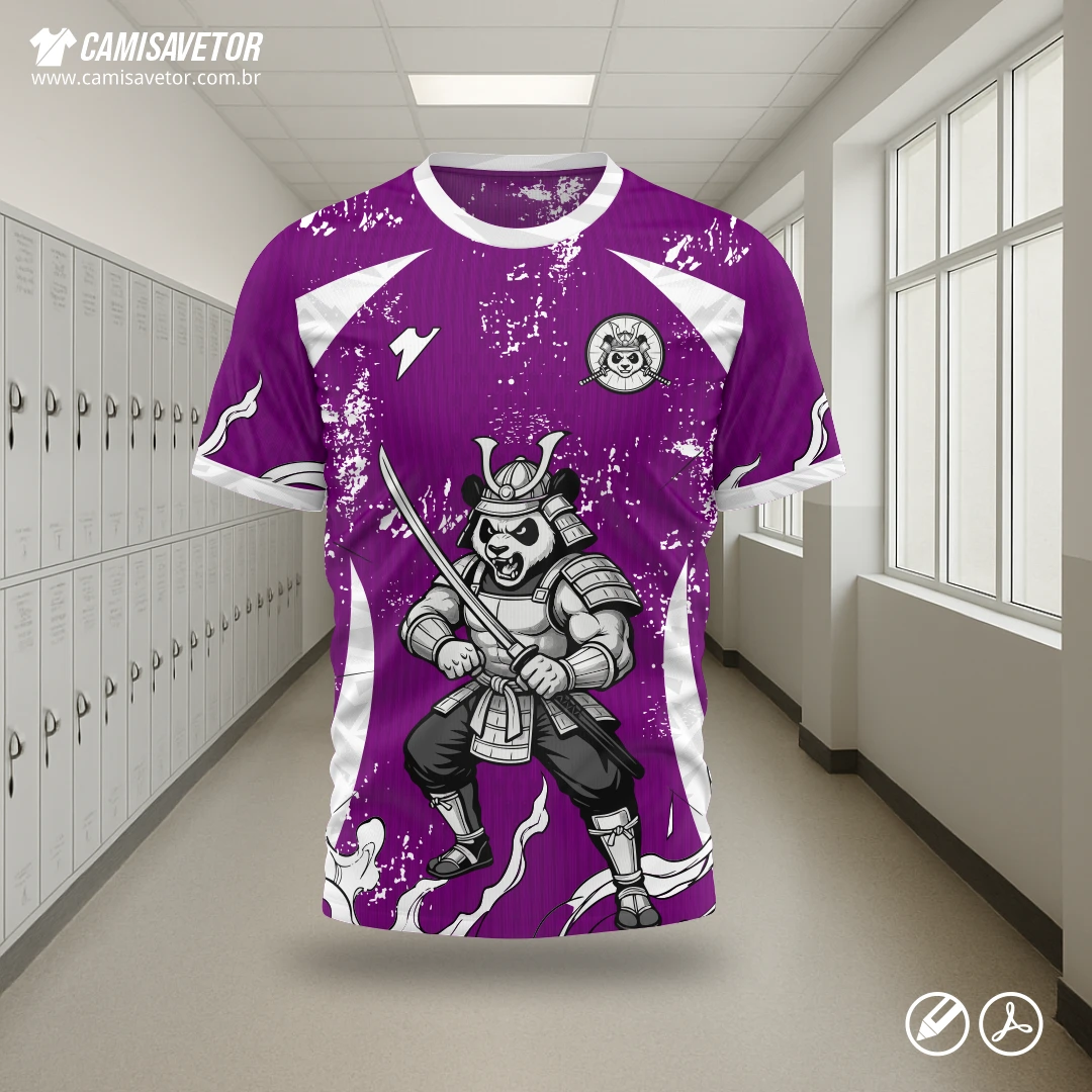 Apresente muita força, estilo e atitude na sua camisa interclasse com a Estampa Camisa Interclasse Mestre Panda Samurai!