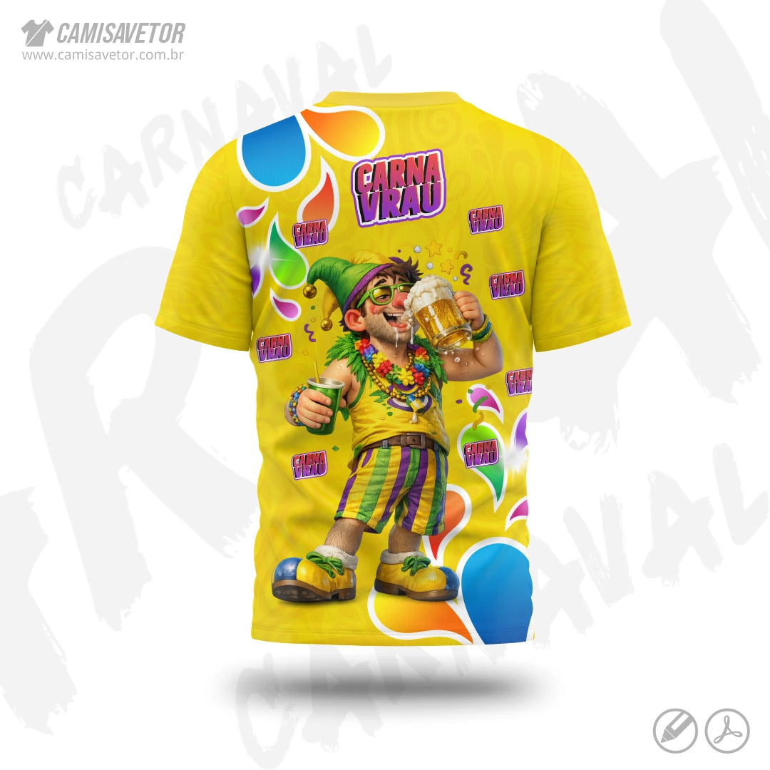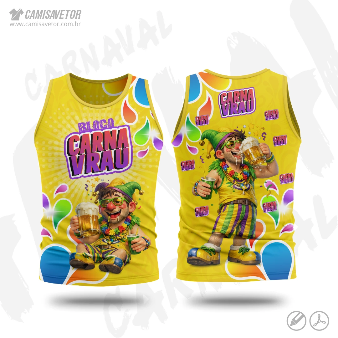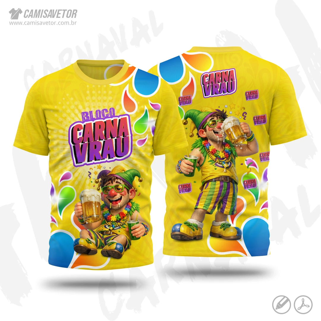 A Estampa Carnaval Bloco Carnavrau 01 é um produto digital profissional, ideal para camisetas de blocos carnavalescos, abadás, eventos de carnaval, festas e ações promocionais. Design alegre e temático, perfeito para personalização e impressão.