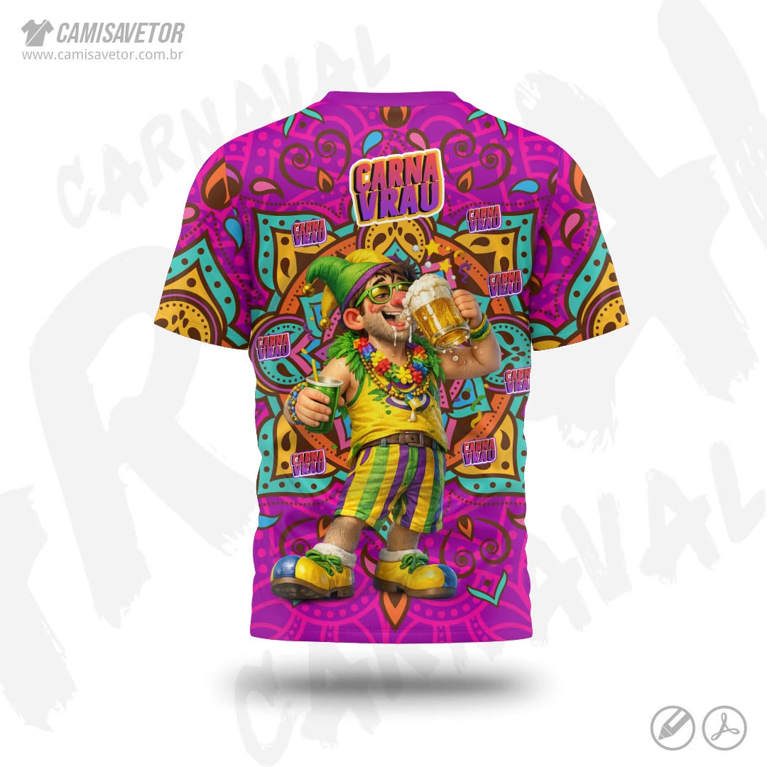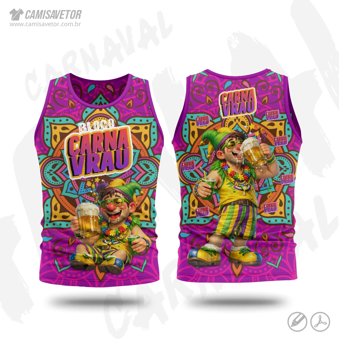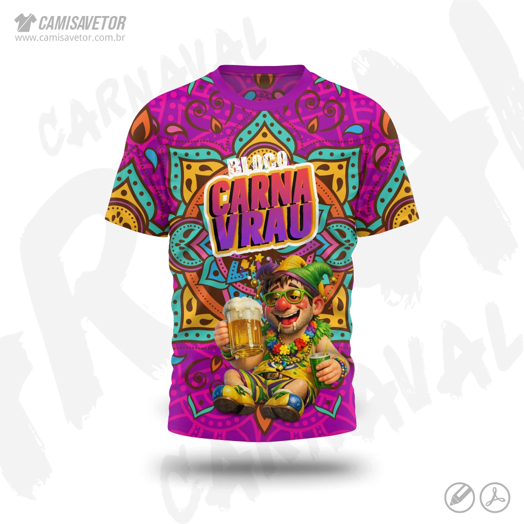 A Estampa Carnaval Bloco Carnavrau 04 é um produto digital profissional, ideal para camisetas de blocos carnavalescos, abadás, eventos de carnaval, festas e ações promocionais. Design alegre e temático, perfeito para personalização e impressão.