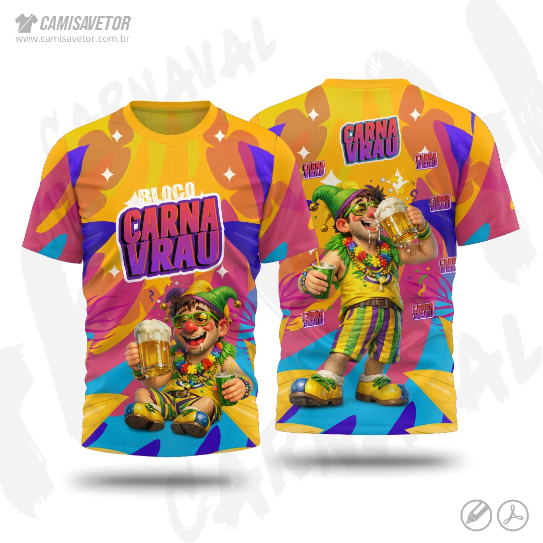 A Estampa Carnaval Bloco Carnavrau 16 é um produto digital profissional, ideal para camisetas de blocos carnavalescos, abadás, eventos de carnaval, festas e ações promocionais. Design alegre e temático, perfeito para personalização e impressão.