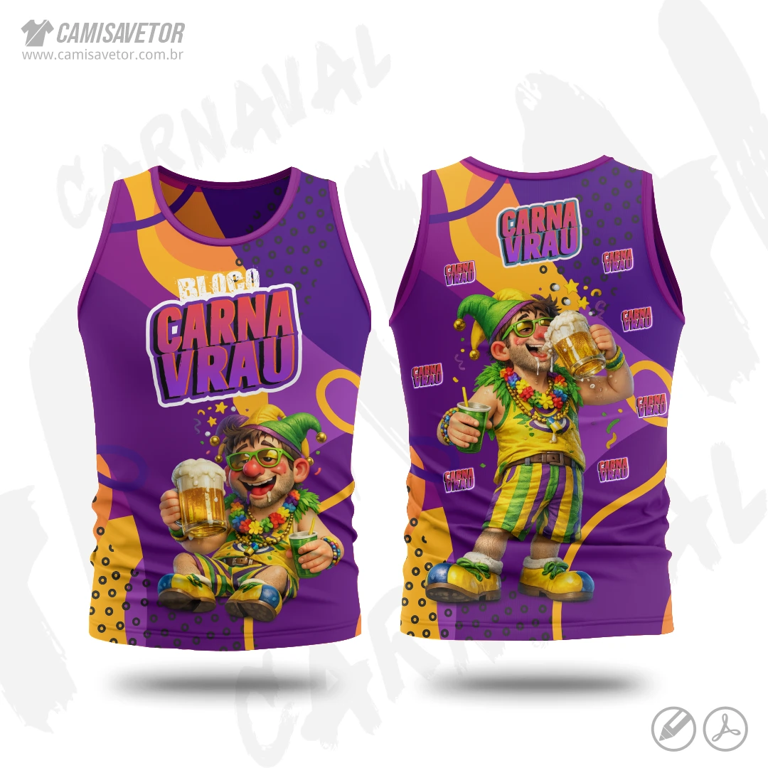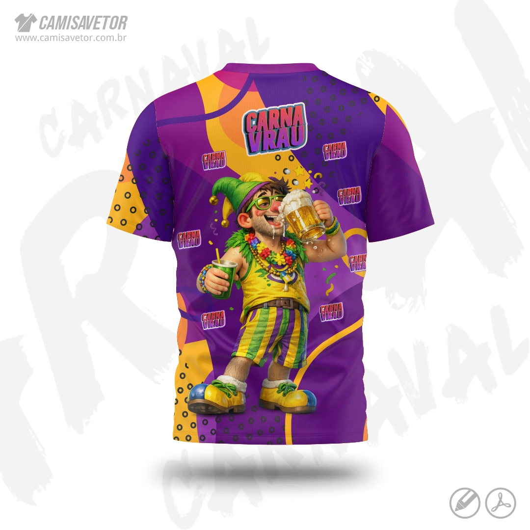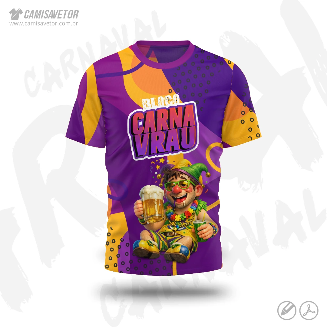 A Estampa Carnaval Bloco Carnavrau 17 é um produto digital profissional, ideal para camisetas de blocos carnavalescos, abadás, eventos de carnaval, festas e ações promocionais. Design alegre e temático, perfeito para personalização e impressão.