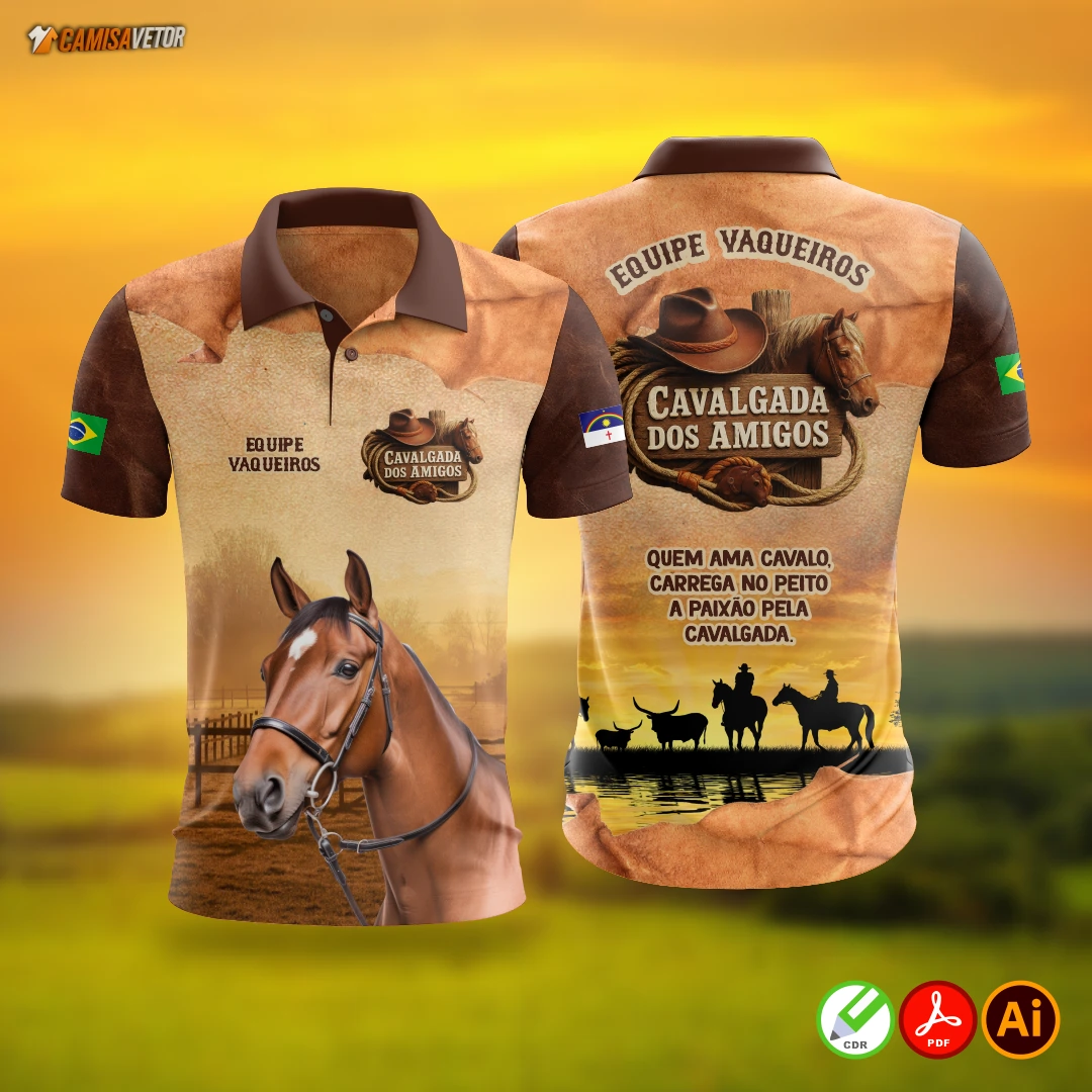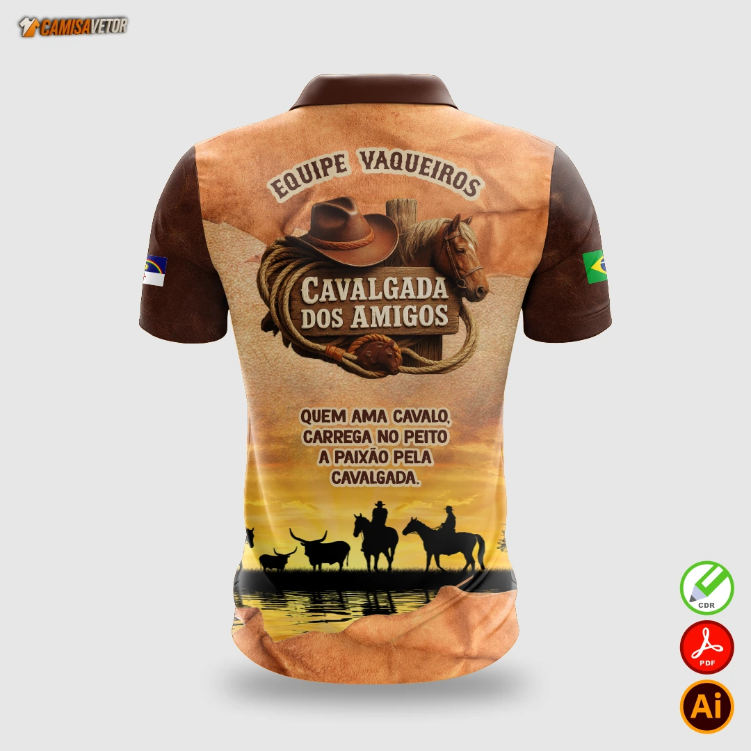 Celebre a tradição, a amizade e a vida no campo com a Estampa Cavalgada dos Amigos 2! Um design exclusivo e impactante, ideal para camisetas, abadás e uniformes de cavalgadas e festas do interior.