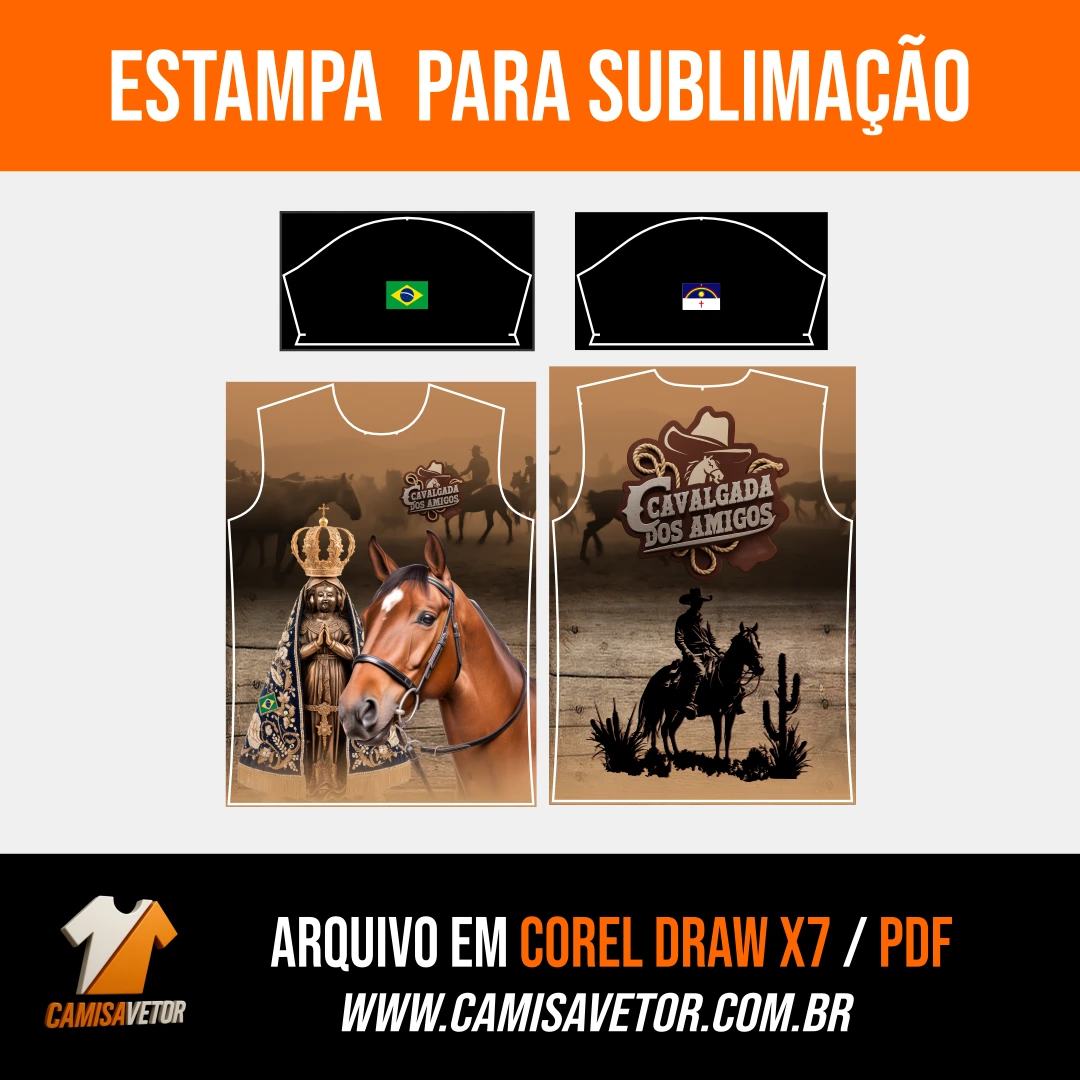 Celebre a tradição, a amizade e a vida no campo com a Estampa Cavalgada dos Amigos 3! Um design exclusivo e impactante, ideal para camisetas, abadás e uniformes de cavalgadas e festas do interior.