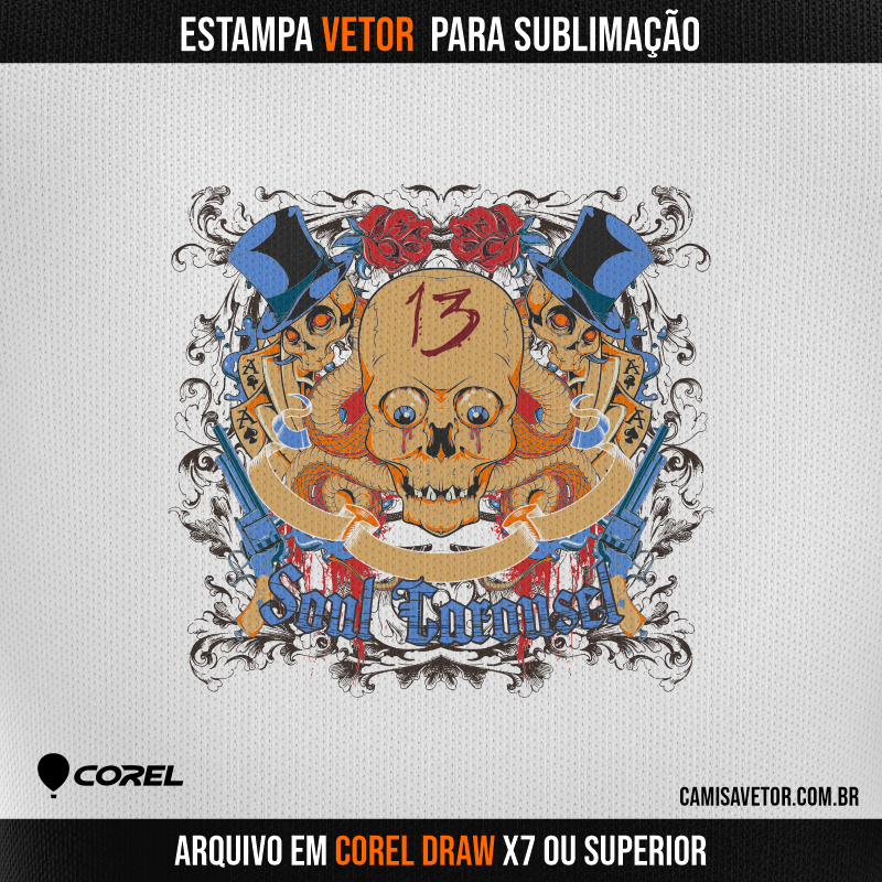 Com nossa estampa vetorizada de Caveira em CorelDRAW, você terá a liberdade de criar camisetas personalizadas incríveis e cheias de estilo. Ideal para quem busca designs autênticos e de alta qualidade para sublimação.