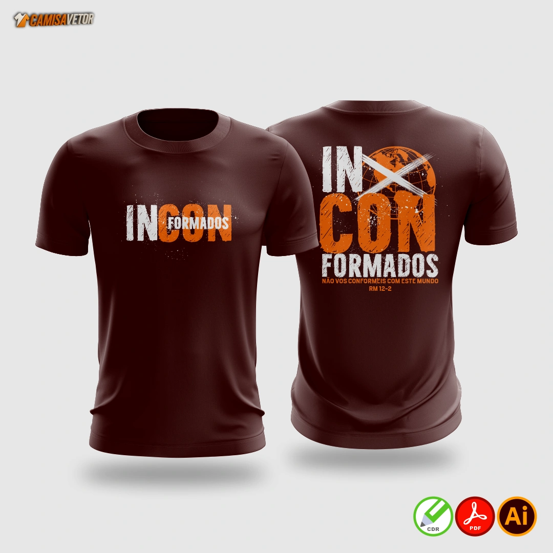 Transmita fé, identidade e estilo com a Estampa Inconformados RM 12-2! Inspirada em Romanos 12:2, essa arte é perfeita para grupos religiosos, eventos cristãos, camisetas de jovens e ministérios que querem se destacar com um design moderno e cheio de significado.