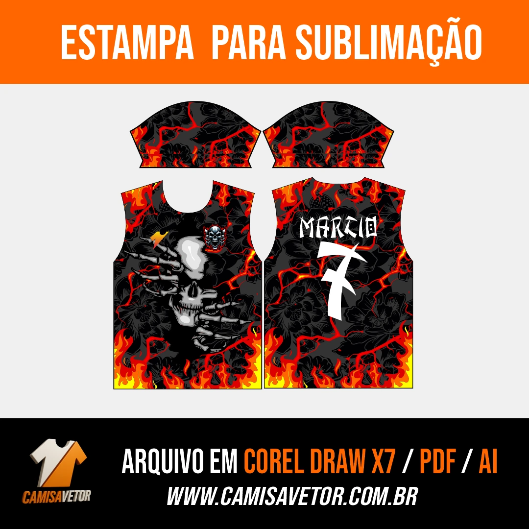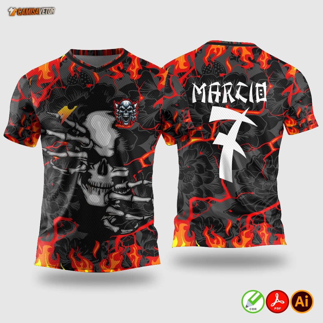Destaque sua equipe com estilo e atitude usando a Estampa Interclasse Caveira Fire! Um design marcante, moderno e cheio de personalidade, perfeito para camisas de turmas, jogos escolares e eventos interclasse.