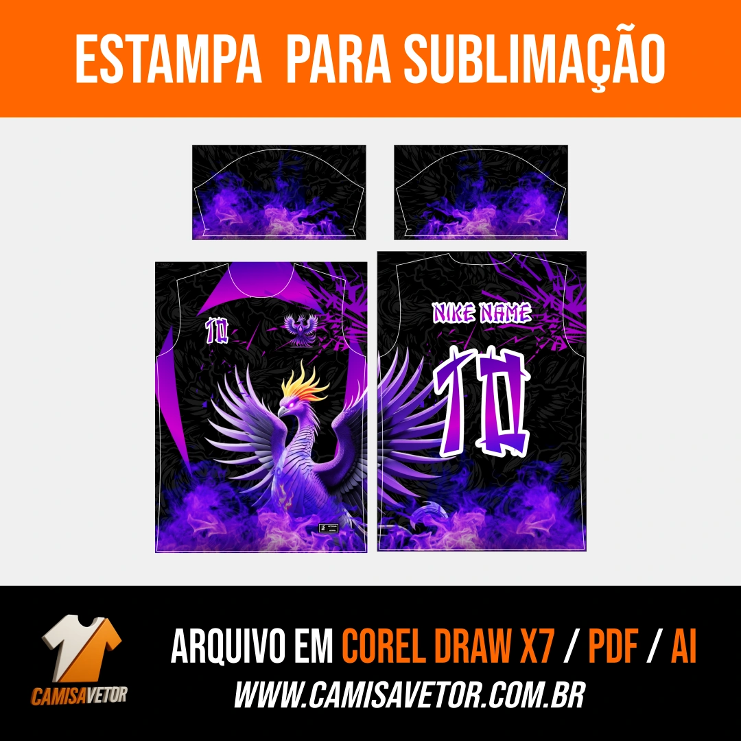 Leve para o seu evento escolar ou campeonato uma arte poderosa e cheia de energia! A Estampa Interclasse Fênix simboliza superação, força e renascimento, perfeita para representar a união e a garra da sua equipe.