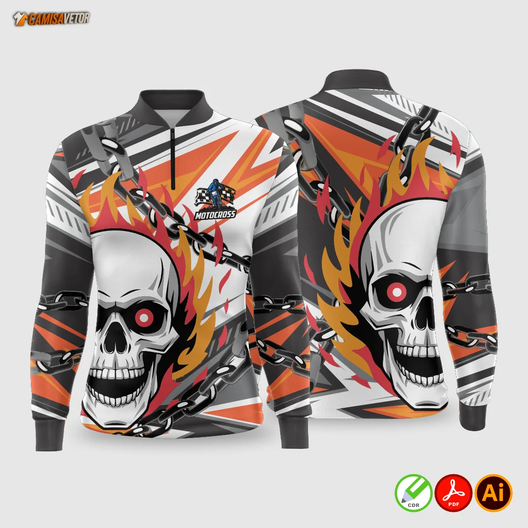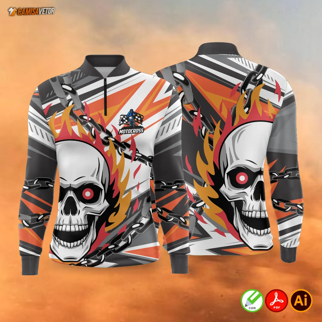 Acelere com estilo e atitude! A Estampa Motocross Caveira é perfeita para quem vive no limite, ama adrenalina e quer transmitir isso em cada detalhe. Uma arte insana, ideal para camisetas, uniformes de equipe, brindes ou eventos off-road.