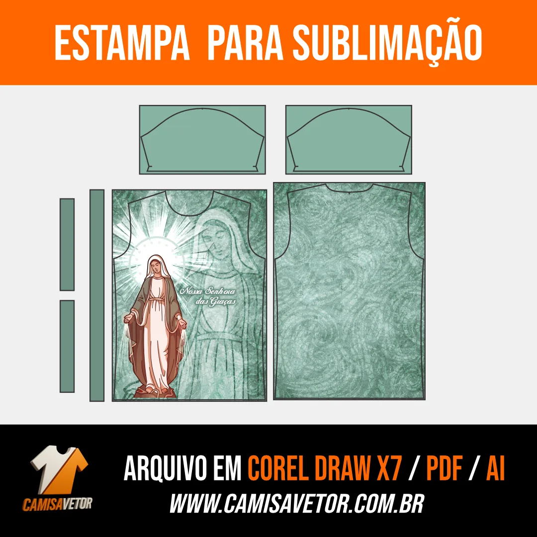 Leve fé, proteção e beleza para suas criações com a Estampa Nossa Senhora das Graças! ✨ Um design inspirado na devoção mariana, perfeito para camisetas, artigos religiosos e projetos personalizados com significado.