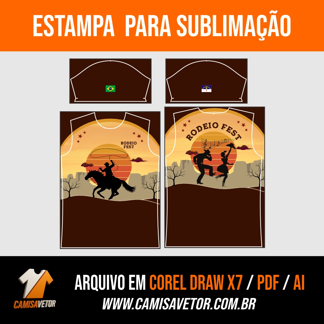 Entre no clima do rodeio com uma arte cheia de estilo, atitude e tradição! A Estampa Rodeio Fest é perfeita para camisas de festas country, eventos sertanejos, exposições agropecuárias, comitivas e amantes do universo western.