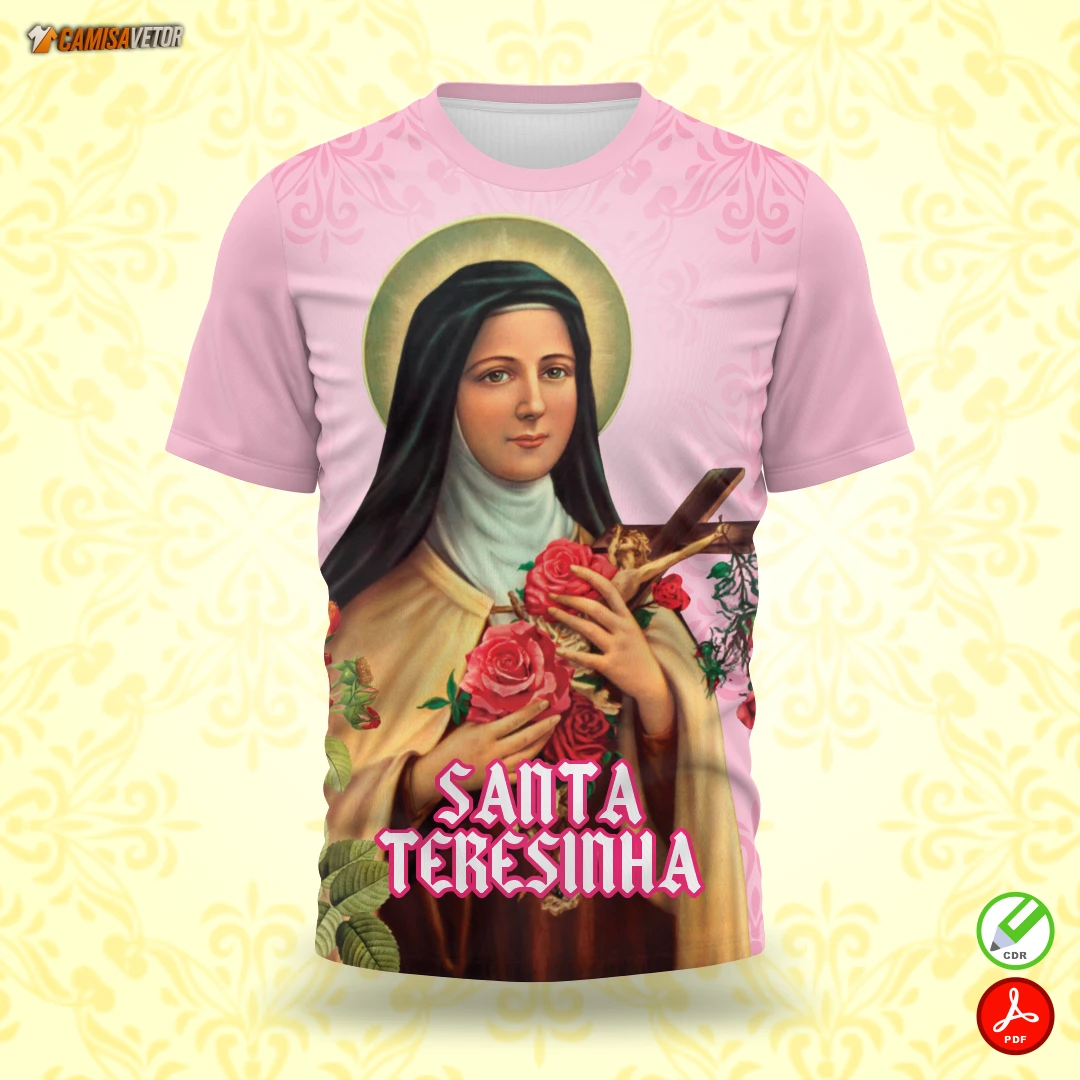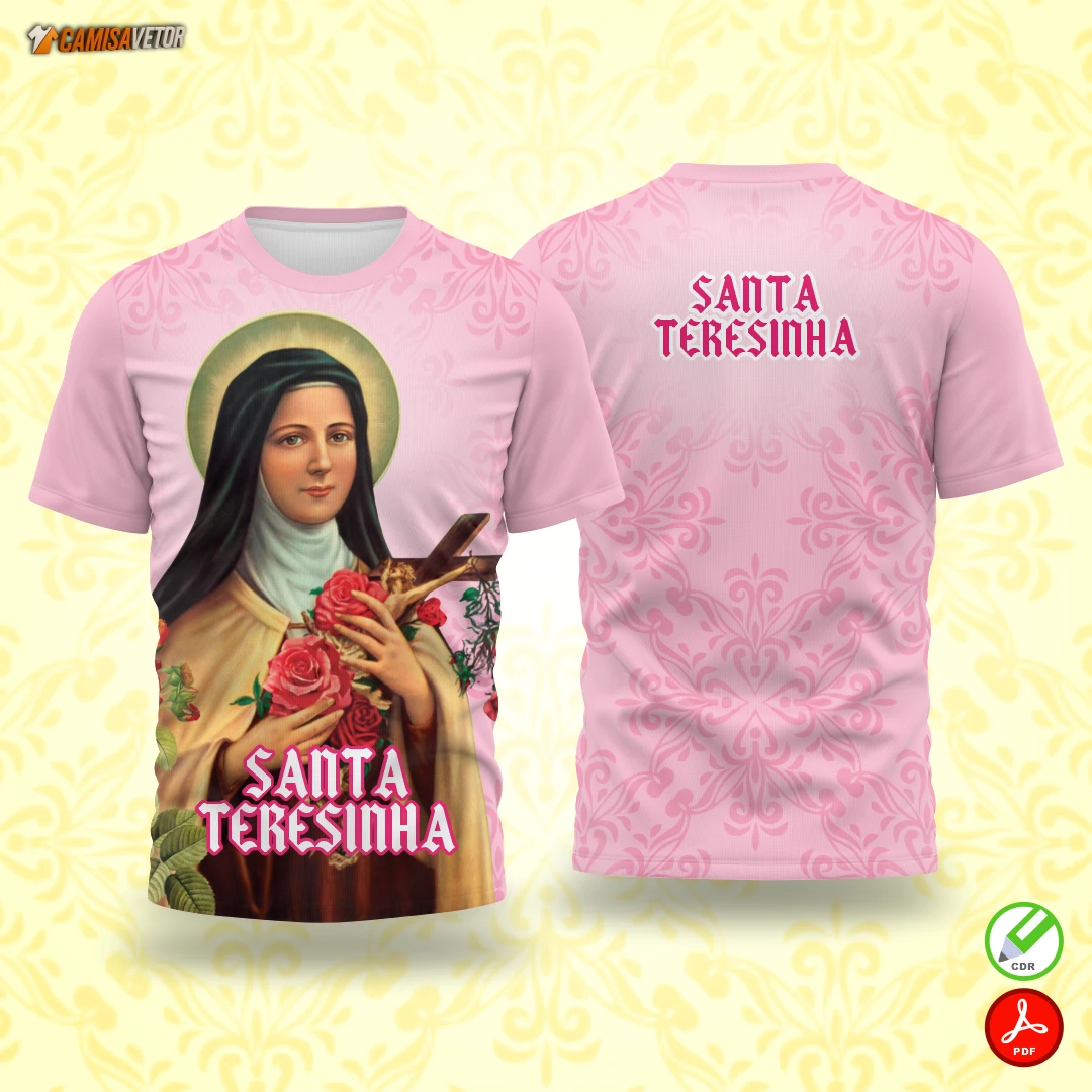 Expresse fé e devoção com a Estampa Santa Teresinha! Um design especial e cheio de significado, ideal para camisetas religiosas, eventos católicos, grupos de oração e celebrações.