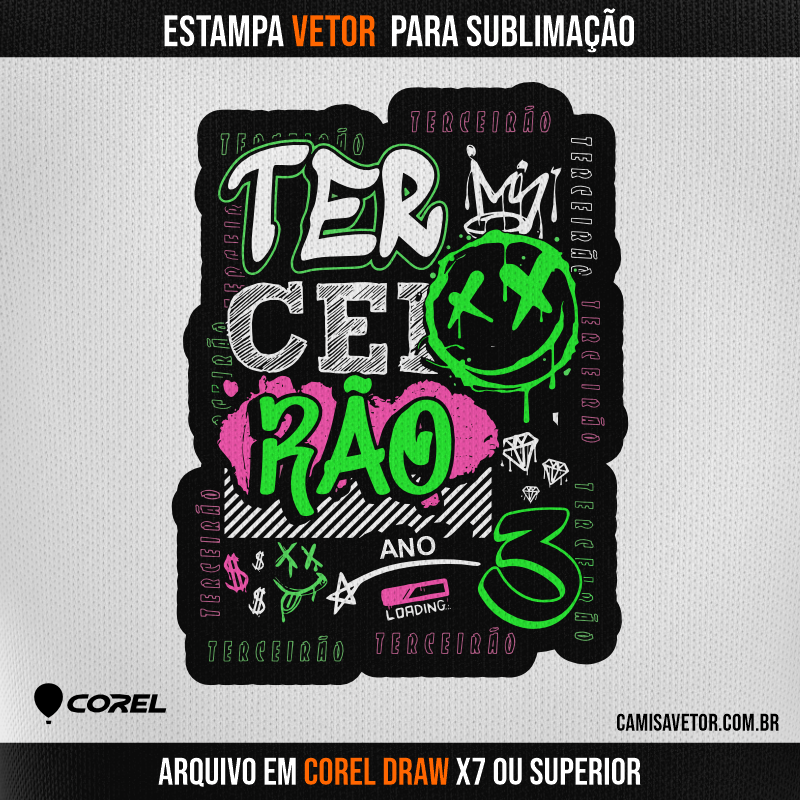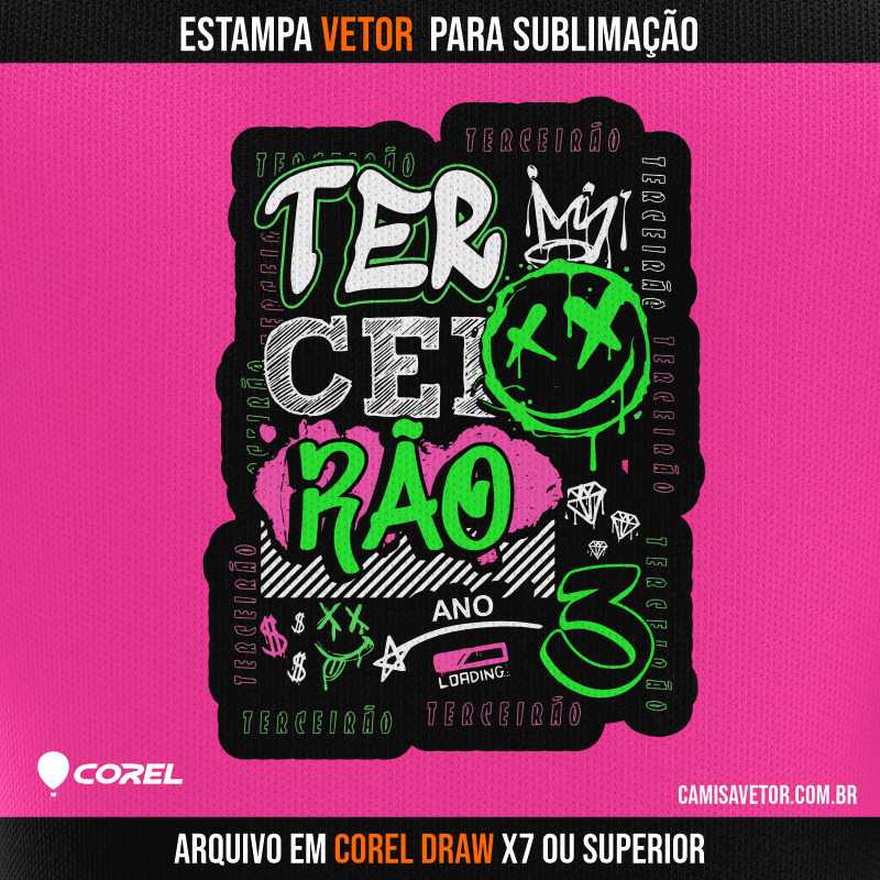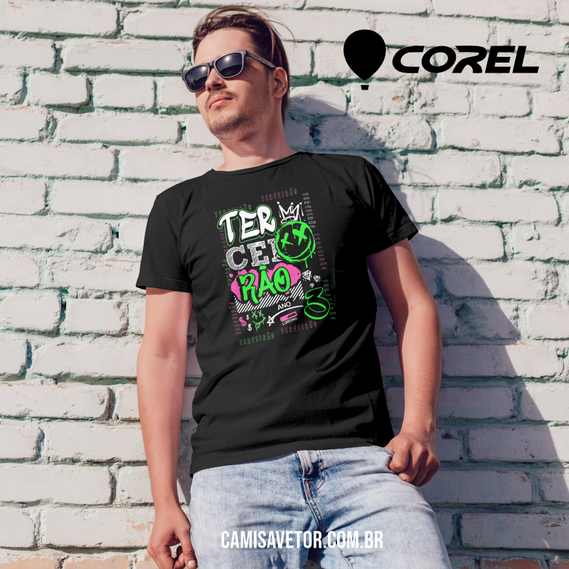 Nossa estampa vetorizada é a pedida certa para quem quer deixar suas camisetas com a cara do sua turma. Com alta resolução e fácil edição no CorelDRAW, você pode personalizar a estampa como quiser e criar peças únicas.