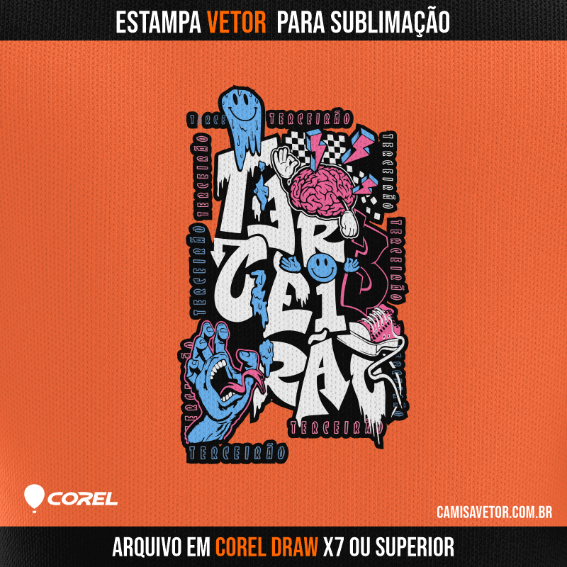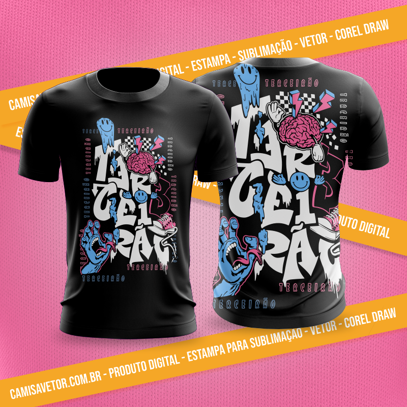 Nossa estampa vetorizada é a pedida certa para quem quer deixar suas camisetas com a cara do sua turma. Com alta resolução e fácil edição no CorelDRAW, você pode personalizar a estampa como quiser e criar peças únicas.