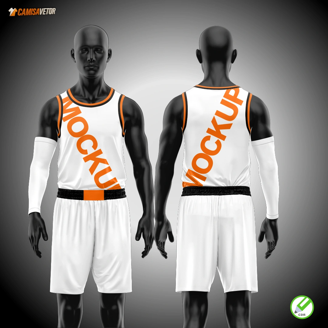 Apresente seus designs de forma profissional e impactante com o Mockup de Uniforme Basquete Masculino. Ideal para designers, estúdios e estamparias que desejam criar apresentações realistas e atrativas para clientes e equipes.