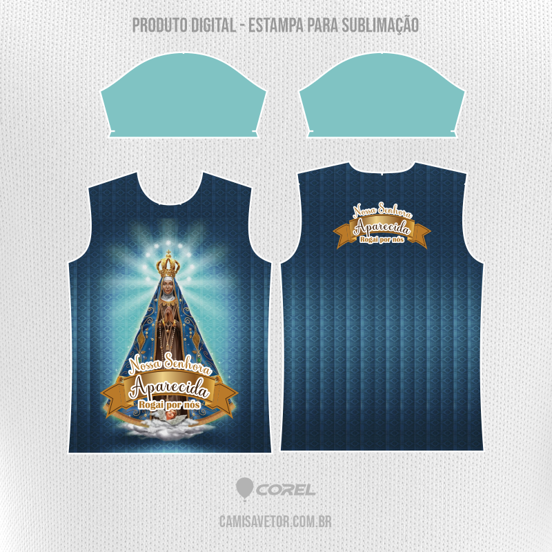 Com nossa estampa vetorizada de Nossa Senhora Aparecida em CorelDRAW, você terá a liberdade de criar camisetas personalizadas incríveis e cheias de estilo. Ideal para quem busca designs autênticos e de alta qualidade para sublimação.