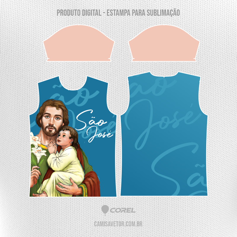 Com nossa estampa vetorizada de São José em CorelDRAW, você terá a liberdade de criar camisetas personalizadas incríveis e cheias de estilo. Ideal para quem busca designs autênticos e de alta qualidade para sublimação.